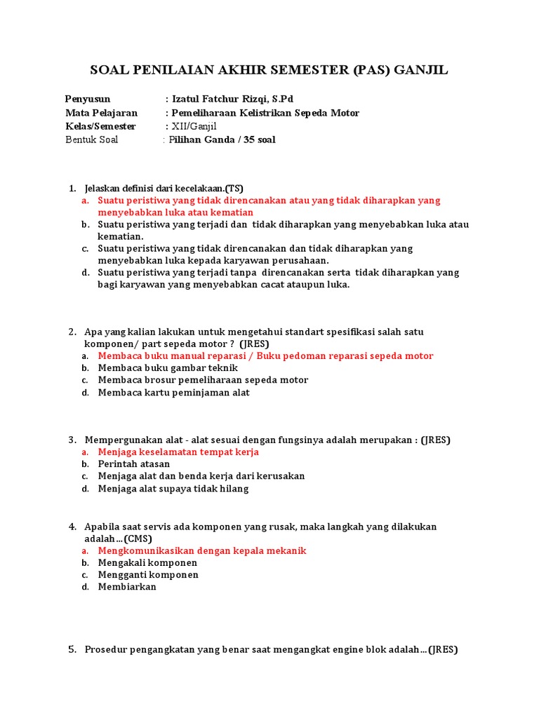 1. Soal Pilihan Ganda: